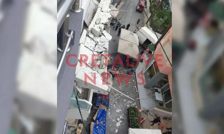 Τμήμα μπαλκονιού αποκολλήθηκε από οίκημα και κατέληξε σε πάγκους λαϊκής αγοράς το μεσημέρι της Δευτέρας (05/05), στο Ηράκλειο, στην Κρήτη.