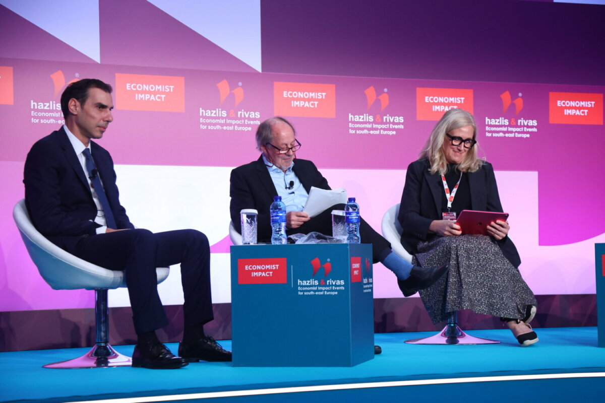 Τη συζήτηση συντόνισε ο John Andrews, Consultant Editor στο The Economist, με τη συμμετοχή του Μάριου Θεμιστοκλέους, Υφυπουργού Υγείας, του Πάνου Καναβού, Αναπληρωτή Καθηγητή Διεθνούς Πολιτικής Υγείας και Αναπληρωτή Διευθυντή του LSE Health στο London School of Economics και της Ilona Torontali, Global Head Pharma Pricing and Reimbursement της Roche.